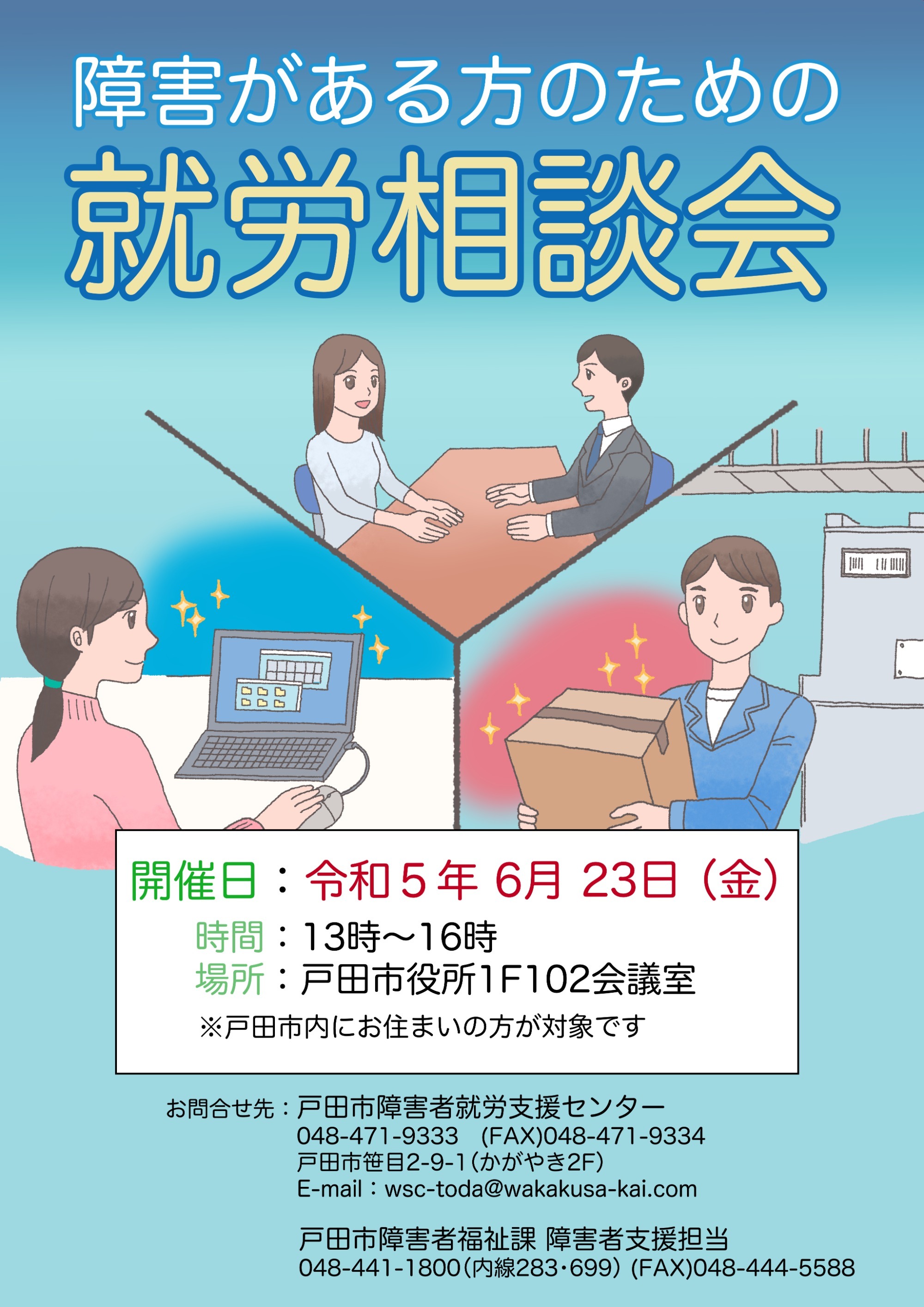 連絡先:戸田市障害者就労支援センター TEL 048-471-9333 FAX 048-471-9334